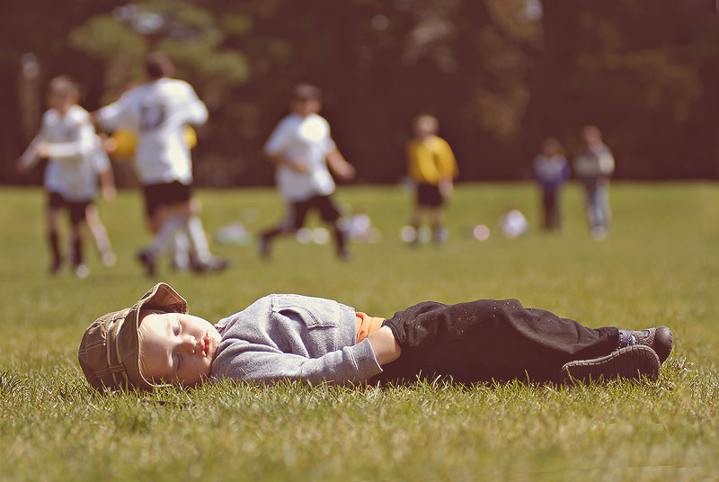 ...and proved again that he could sleep anywhere by sleeping first at Lexi's soccer game on the field...