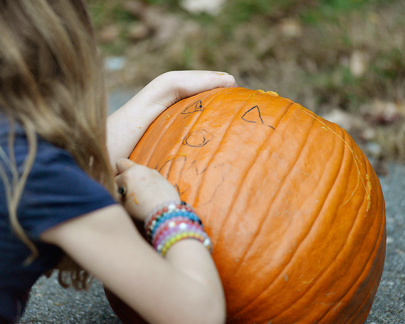 We carved pumpkins! Its always fun to watch their faces when they pull the guts out...